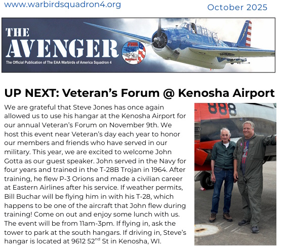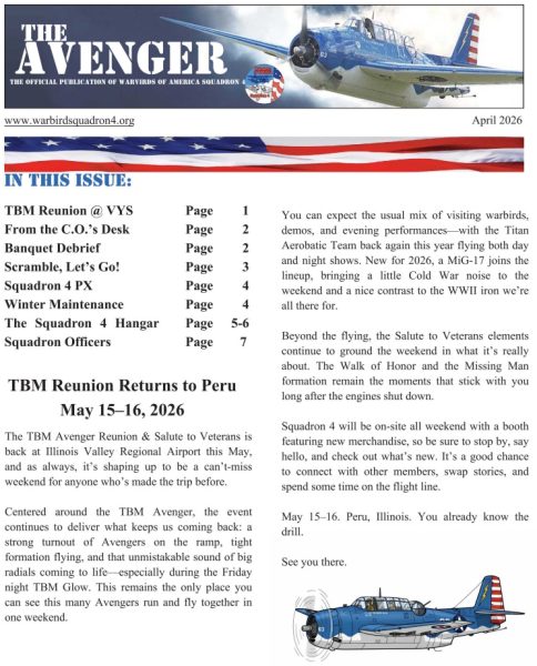 EAA Warbirds of America Squadron 4 is dedicated to the appreciation of military aviation, its people and its history. EAA Warbirds of America Squadron 4 fosters an environment that celebrates all past and present members of the U.S. Armed Services.